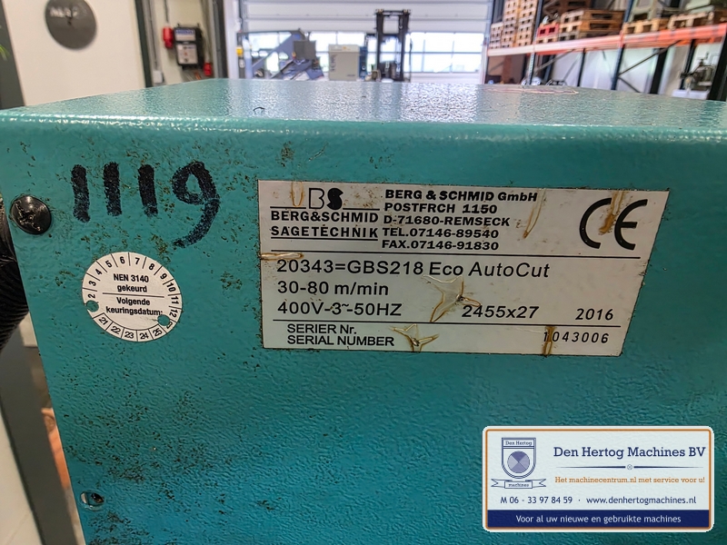 BERG+SCHMID GBS 218 Eco AutoCut bandzaag voor dubbel verstek Snelheid traploos : 25-80 m/min