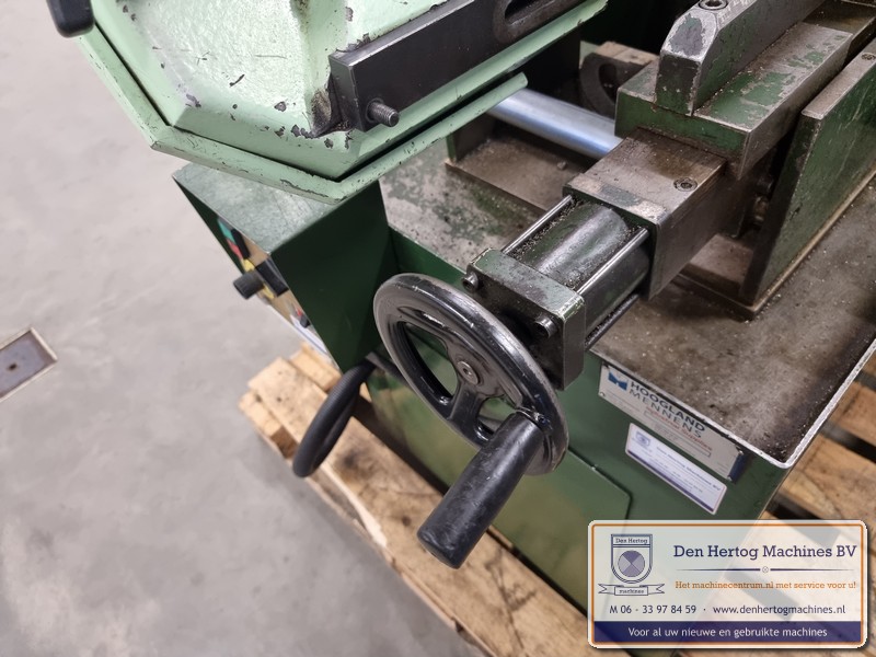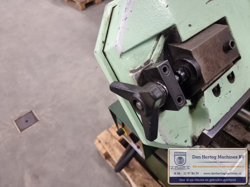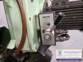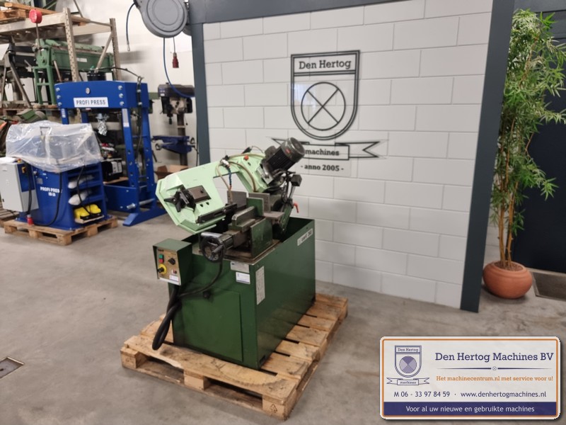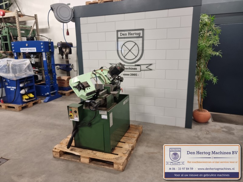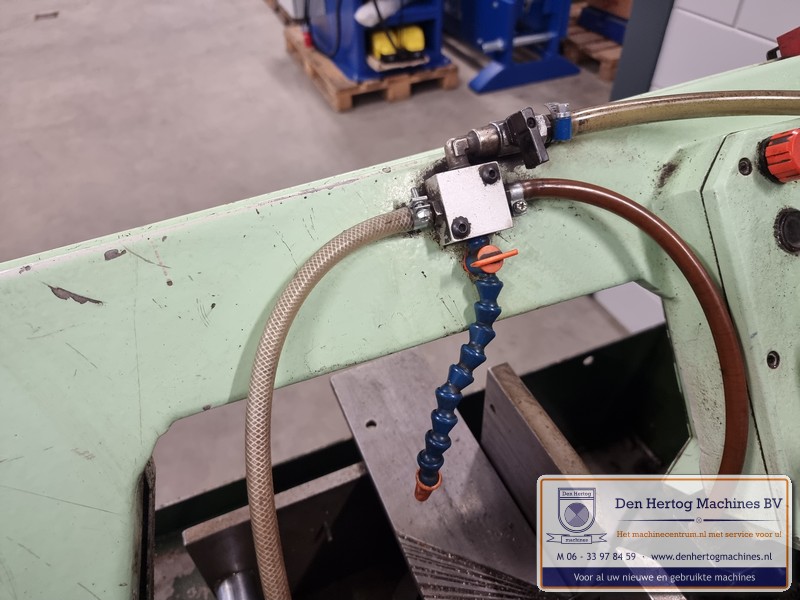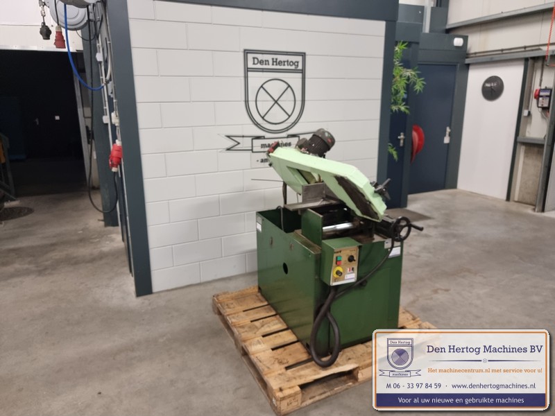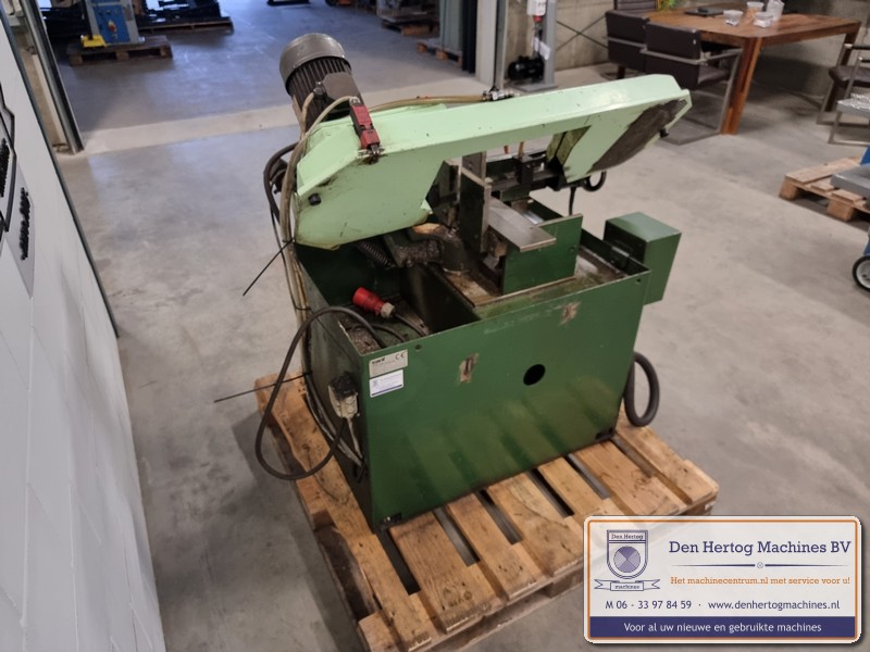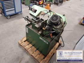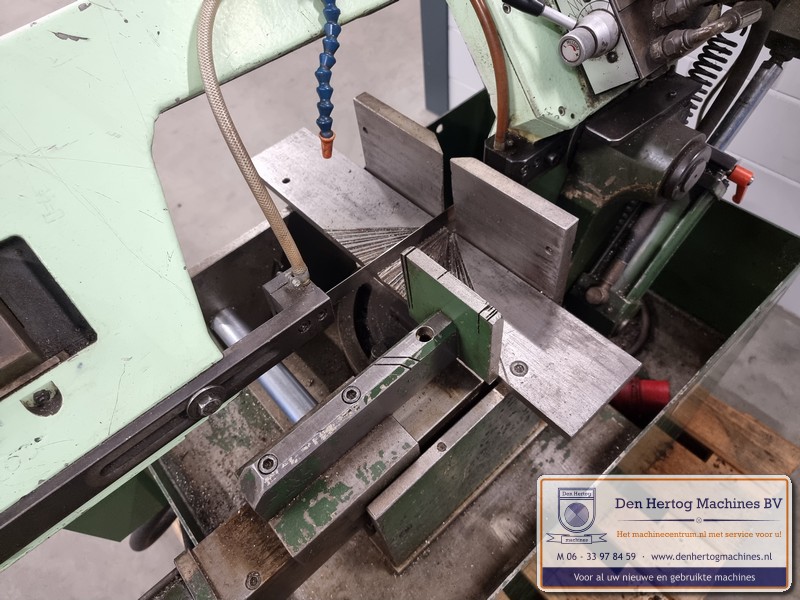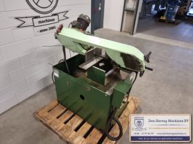 Hydraulisch gestuurde half-automatische lintzaagmachine voor kleine diameters, erg robuust en praktisch in gebruik.