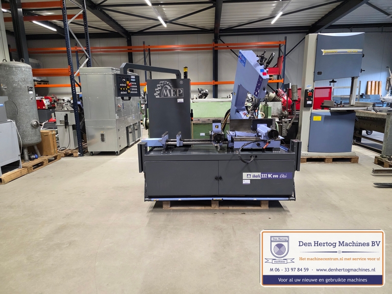 Mep Shark 332 NC EVO is een volautomatische bandzaagmachine voorzien van een zaagcontrolesysteem.