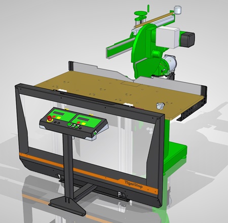 - Radiaalzaag met semi-geautomatiseerde hoekinstelling